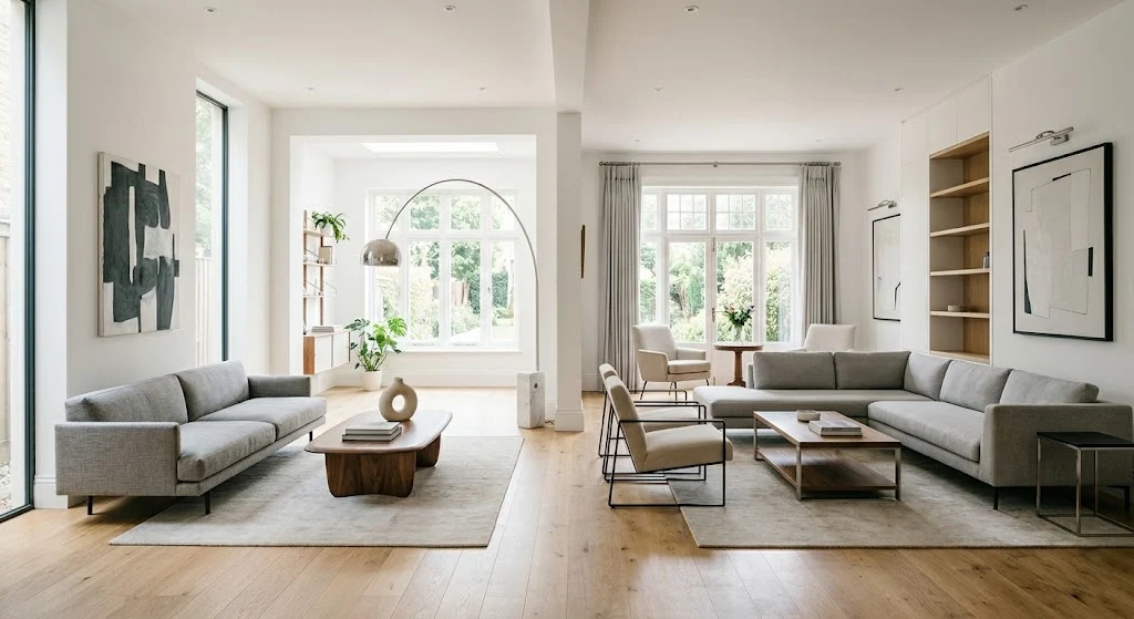 Decoration in a modern room is kept to a minimum. What you do display tends to have a purpose — a piece of abstract art, a single sculptural vase, a thoughtfully placed plant. The “less is more” principle isn’t just a phrase here; it’s a way of living.